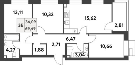 Продаётся 3-комнатная квартира в строящемся доме (Корпус 2), срок сдачи: IV-кв. 2026, общей площадью 69 кв.м., на 2 этаже. Многоквартирный жилой комплекс по адресу: г. Москва, поселение Сосенское, поселок Газопровод, улица Лесные Поляны 5-я, земельный участок 20