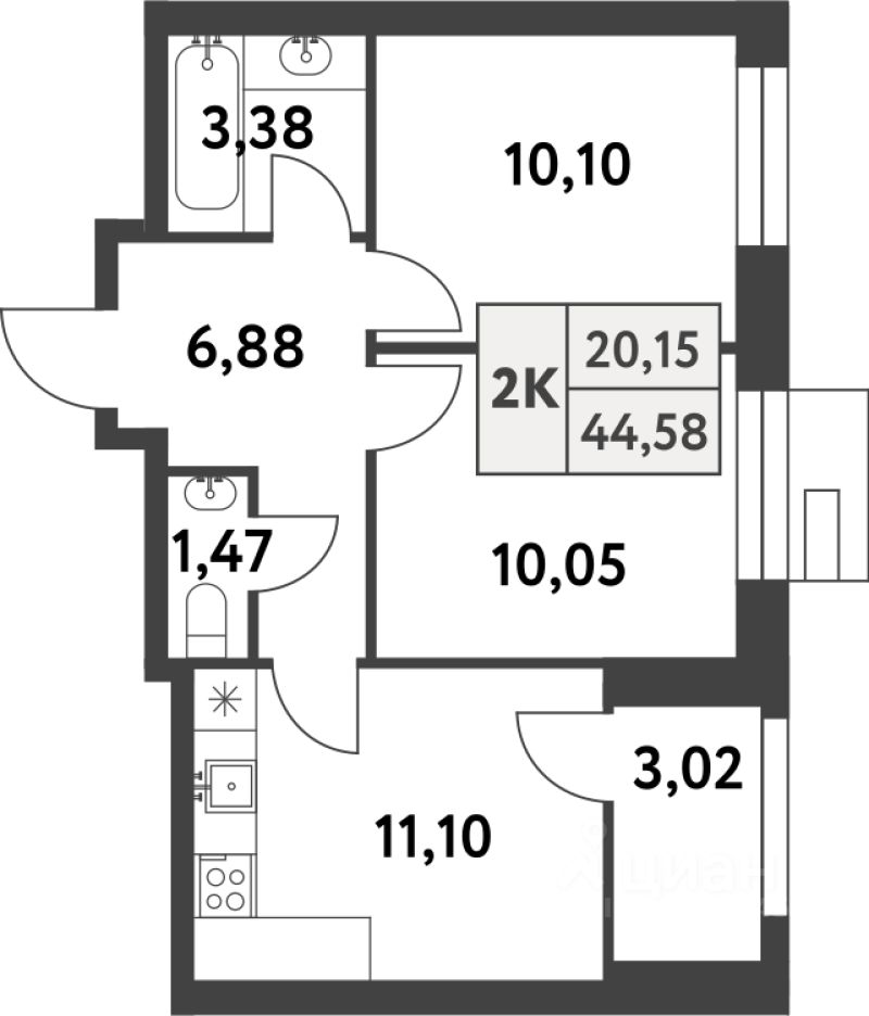 Продаётся 2-комнатная квартира в строящемся доме (Корпус 2), срок сдачи: IV-кв. 2026, общей площадью 44.5 кв.м., на 7 этаже. Многоквартирный жилой комплекс по адресу: г. Москва, поселение Сосенское, поселок Газопровод, улица Лесные Поляны 5-я, земельный участок 20