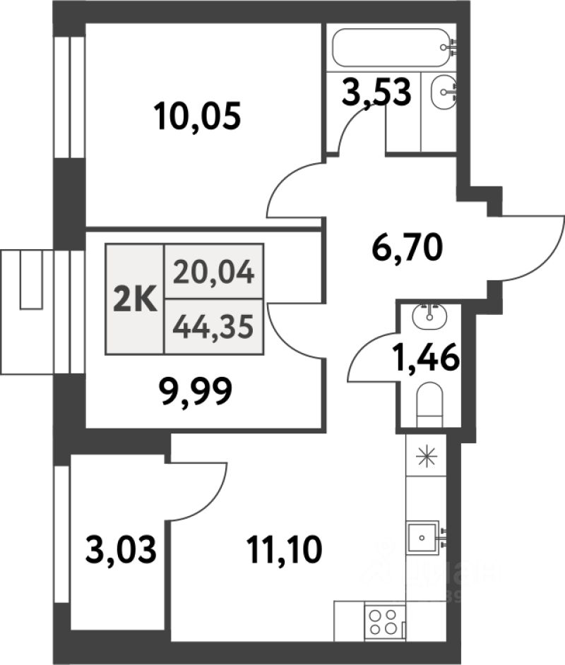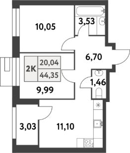 Продаётся 2-комнатная квартира в строящемся доме (Корпус 1), срок сдачи: IV-кв. 2026, общей площадью 44.3 кв.м., на 9 этаже. Многоквартирный жилой комплекс по адресу: г. Москва, поселение Сосенское, поселок Газопровод, улица Лесные Поляны 5-я, земельный участок 20