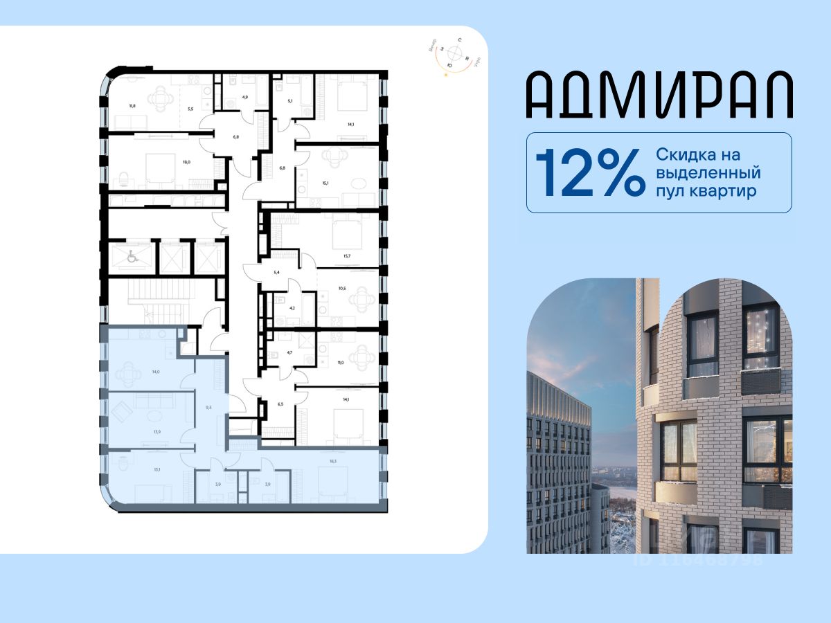 Квартира находится в корпусе жилого комплекса бизнес-класса "Адмирал", расположенного по адресу г. Москва, ул. Шоссейная, 4Д. (Застройщик - "Галс Девелопмент").
