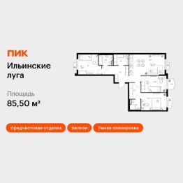 Продаётся 3-комн. квартира площадью 85,5 кв.м на 3 этаже 9 этажного дома (Корпус 3.5, Секция 4) проекта ПИК Ильинские луга. Светлый просторный подъезд на уровне земли, функциональная планировка, большие окна, предчистовая отделка.