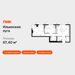 Продаётся 2-комн. квартира площадью 67,4 кв.м на 7 этаже 9 этажного дома (Корпус 3.5, Секция 2) проекта ПИК Ильинские луга. Светлый просторный подъезд на уровне земли, функциональная планировка, большие окна, c отделкой.