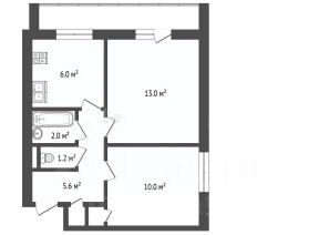 - жилая площадь 23,6 кв. м: две изолированные комнаты 10 и 13,6 кв. м;