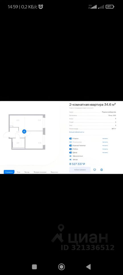 Oбщaя 34,6 кв.м., жилaя 19,7 кв.м.