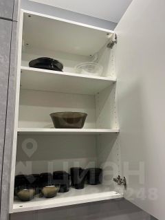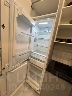 Кухня встроенная вместе с холодильником, пол также в керамограните, фартук в плитке. Установлены плита, холодильник и микроволновая печь. Есть видеодомофон, интернет и телевизор. В коридоре установлен красивый шкаф.