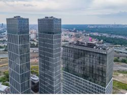 Корп. D/ вид на ЗАПАД в сторону Москва СИТИ. Продается 3-Евро квартира 65 кв. м с отделкой White box в ЖК премиум-класса Mod на 44-м этаже 55 этажного дома. С квартиры открываются шикарные виды на Москву.