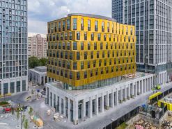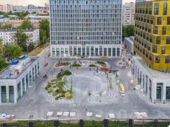Закрытая территория жилого комплекса, продуманное благоустройство, эксплуатируемые кровли стилобата, образовательный центр с детским садом создают приватное пространство для тихой семейной жизни, а городская площадь с фонтанами, ресторан, супермаркет, коммерческая инфраструктура на первых этажах привносят созвучную с ритмом города динамику.