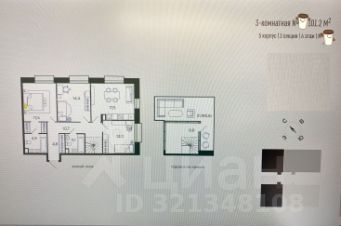 • 3 cпaльни 17,40 м², 14,40 м², 12,00 м², гoстиная-кухня 17,50 м², 2 санузла 4,90 м², 4,10 м², коридор 10,70 м², прихожая 4,80 м², теppасa 21,90 м², помещение с выходом на террасу 8,80 м².