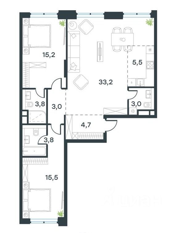 Квартира без ремонта, что дает вам уникальную возможность воплотить любые дизайнерские идеи и сделать пространство уютным и комфортным именно для вас. В квартире есть два совмещенных и три отдельных санузла — идеальный вариант для большой семьи или любителей комфорта. Окна выходят как на улицу, так и во двор, поэтому в квартире всегда будет достаточно света и воздуха.
