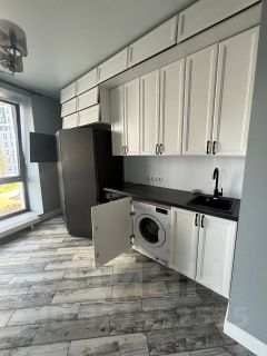 Установлена кухня с индукционной плитой, стиральная машина и двухсекционный холодильник Liebherr. Совмещённая ванная комната с ванной и раковиной. Требуется лёгкий косметический ремонт.