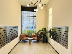 Лобби с ресепшеном 24/7, лаунж-пространством, колясочной и лапомойкой для питомцев.