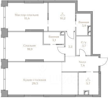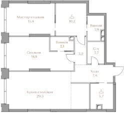 Представляем квартиру в клубном доме Гарден 3 с 2 спальнями площадью 100,8 м2 на 2 этаже.