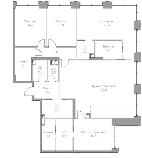 Представляем квартиру в клубном доме Гарден 3 с 4 спальнями площадью 180,6 м2 на 10 этаже.