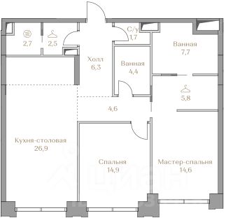 Мастер-спальня с гардеробной и ванной комнатой