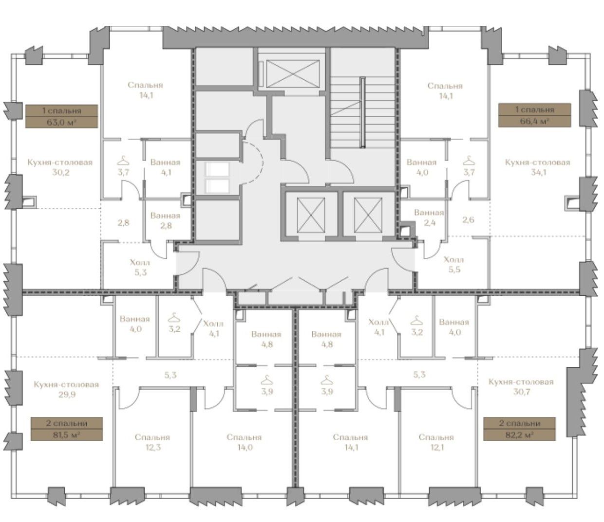 - Будучи архитектурной метафорой высокогорья, интерьер парадных лобби дома задаёт основную тему горных просторов