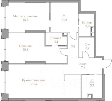 Представляем квартиру в клубном доме Гарден 2 с 2 спальнями площадью 100,7 м2 на 3 этаже.