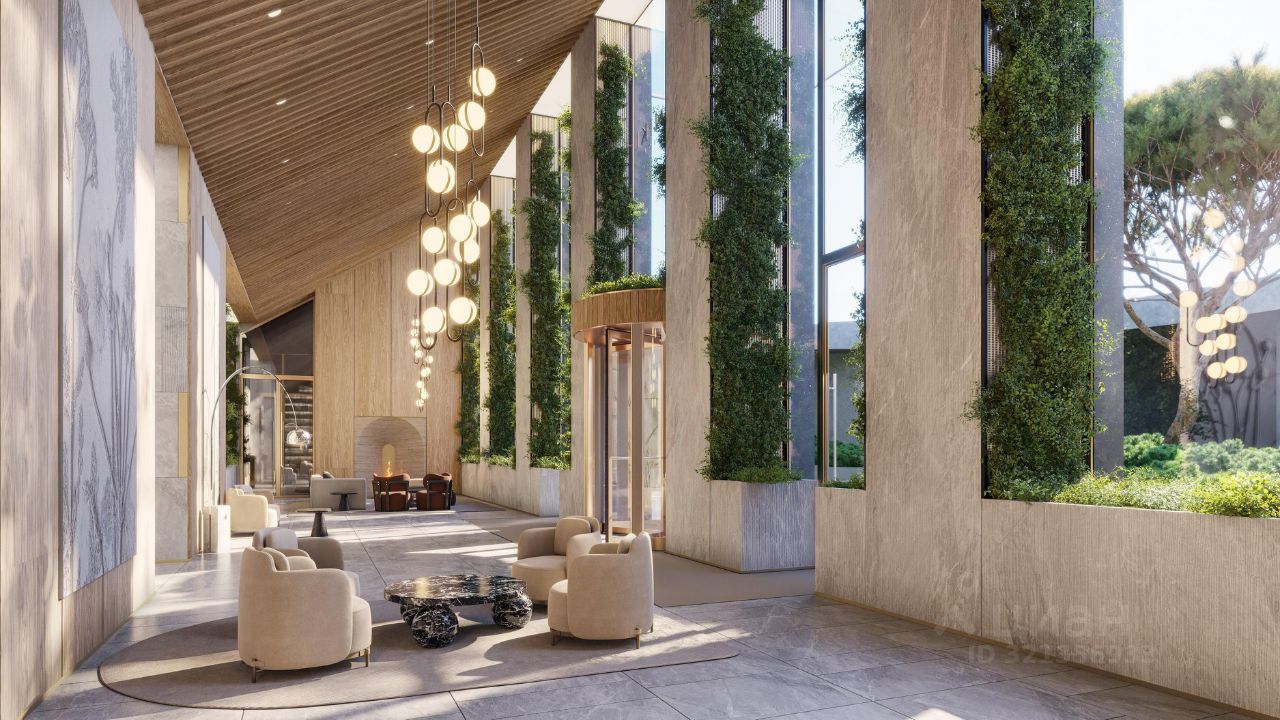 - Парадное лобби от международного бюро ODA Architecture с интерьерным озеленением