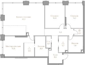 - Мастер-спальня с гардеробной и ванной комнатой