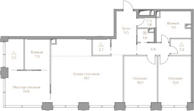 - Мастер-спальня с гардеробной и ванной комнатой