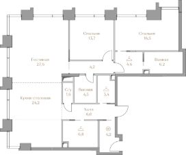 В клубном доме Вотерфронт 3 проекта КОЛЛЕКЦИЯ ЛУЖНИКИ в Хамовниках продаётся коллекционная премиальная квартира с 2 спальнями площадью 123,5 м2 на 16 этаже.