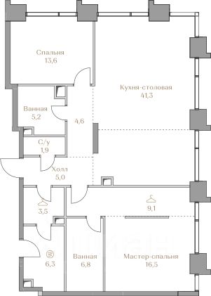 В клубном доме Waterfront 2 проекта Luzhniki Collection в Хамовниках продаётся коллекционная премиальная квартира с 2 спальнями площадью 113,8 м2 на 13 этаже.