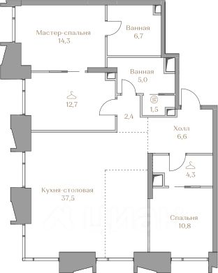 В клубном доме Хайлайн 2 проекта КОЛЛЕКЦИЯ ЛУЖНИКИ в Хамовниках продаётся коллекционная премиальная квартира с 2 спальнями площадью 101,8 м2 на 13 этаже.