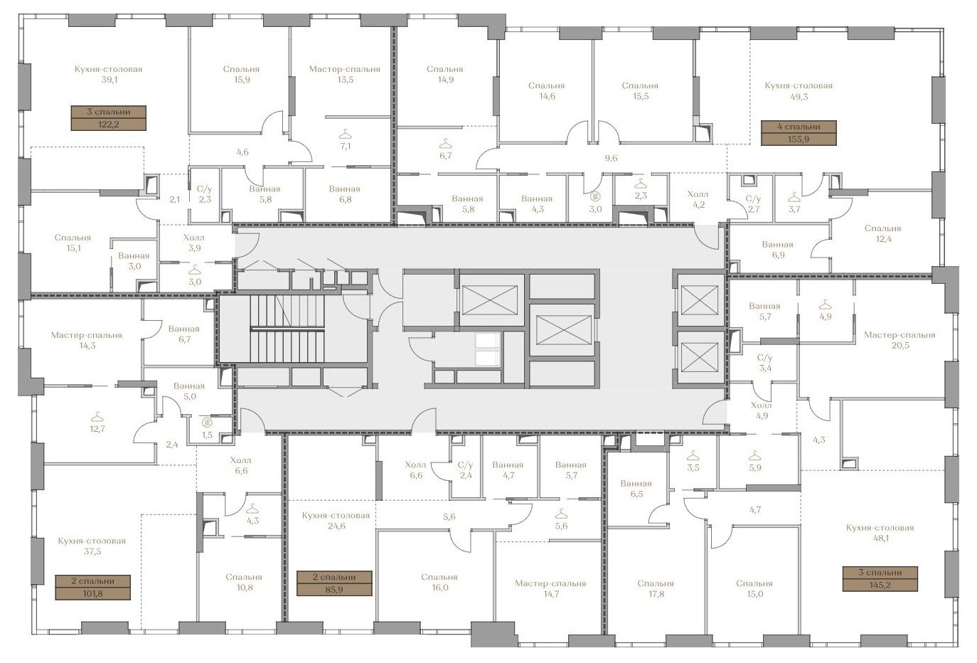 В клубном доме Highline 2 проекта Luzhniki Collection в Хамовниках продаётся коллекционная премиальная квартира с 2 спальнями площадью 101,8 м2 на 13 этаже.
