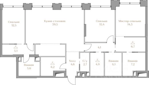 - Мастер-спальня с гардеробной и ванной комнатой