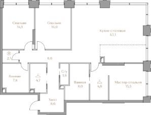 В клубном доме Гарден 1 проекта КОЛЛЕКЦИЯ ЛУЖНИКИ в Хамовниках продаётся коллекционная премиальная квартира с 3 спальнями площадью 133 м2 на 9 этаже.