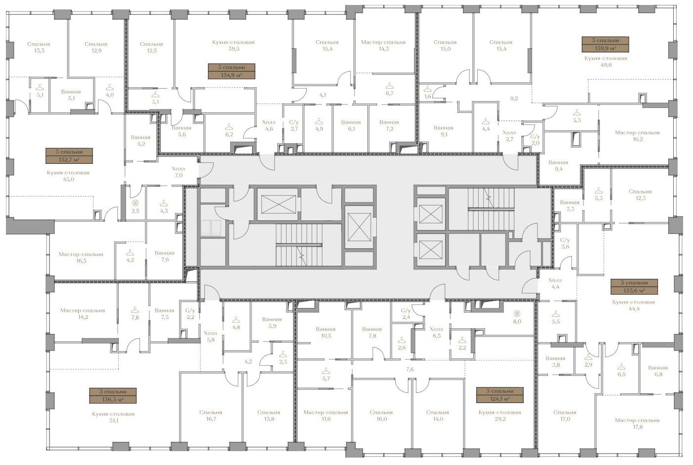 В клубном доме Garden 1 проекта Luzhniki Collection в Хамовниках продаётся коллекционная премиальная квартира с 3 спальнями площадью 139,9 м2 на 16 этаже.