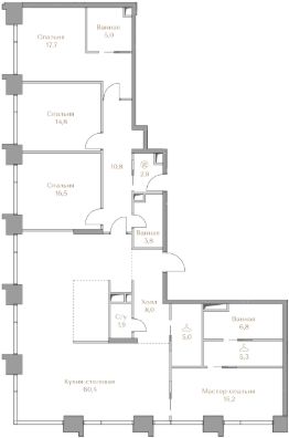 Представляем квартиру в клубном доме Waterfront 5 с 4 спальнями площадью 174 м2 на 4 этаже.