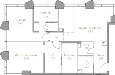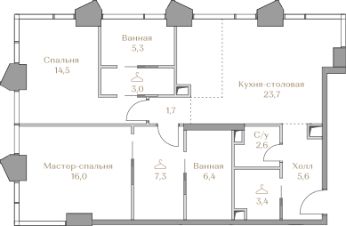 - Мастер-спальня с гардеробной и ванной комнатой