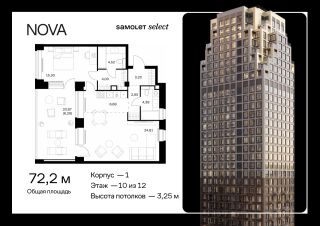 Предлагается 1-комнатная квартира премиум-класса 72,16 кв.м в корпусе 1 на 10 этаже, в ЖК "NOVA"