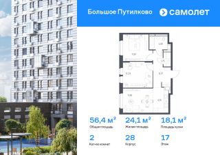 Строим кварталы для жизни с заботой о будущем. Предлагается 2-комнатная квартира комфорт-класса 56,36 кв.м в корпусе 28 на 17 этаже, в ЖК "Большое Путилково"