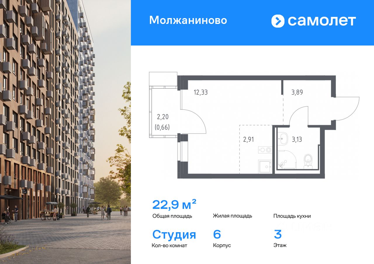 Строим кварталы для жизни с заботой о будущем. Предлагается квартира студия комфорт-класса 22,92 кв.м в корпусе 6 на 3 этаже, в ЖК "Молжаниново"