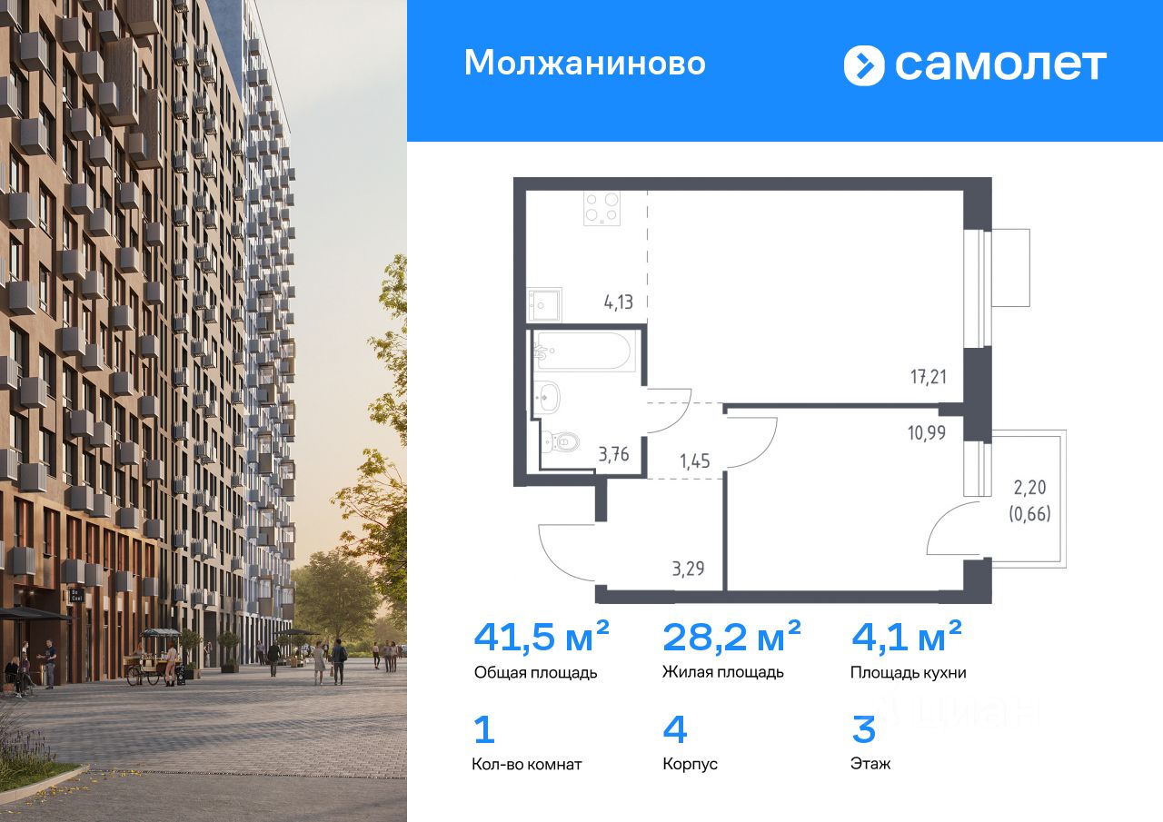 Предлагается 1-комнатная квартира комфорт-класса 41,49 кв.м в корпусе 4 на 3 этаже, в ЖК "Молжаниново"