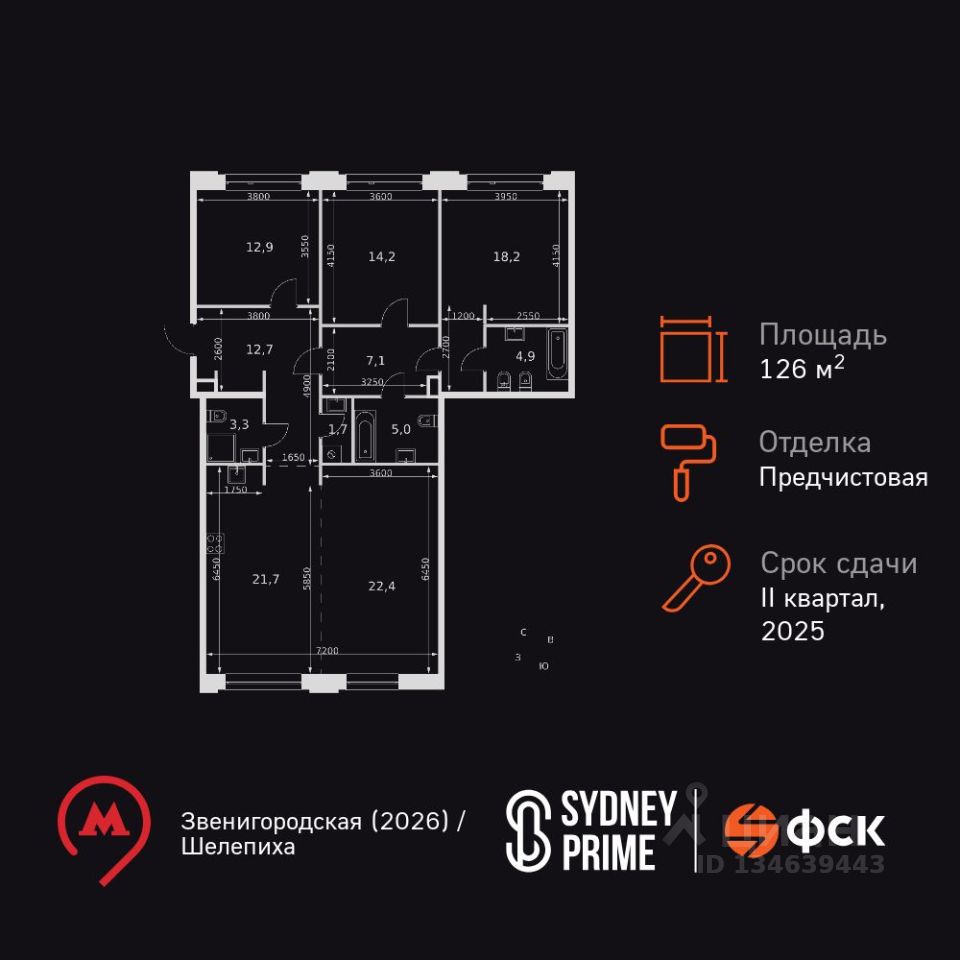Продаётся 3-к квартира номер 31 общей площадью 126.6 кв.м. на 4-м этаже 8 этажного здания. Отделка Whitebox. Цена с учётом скидки.