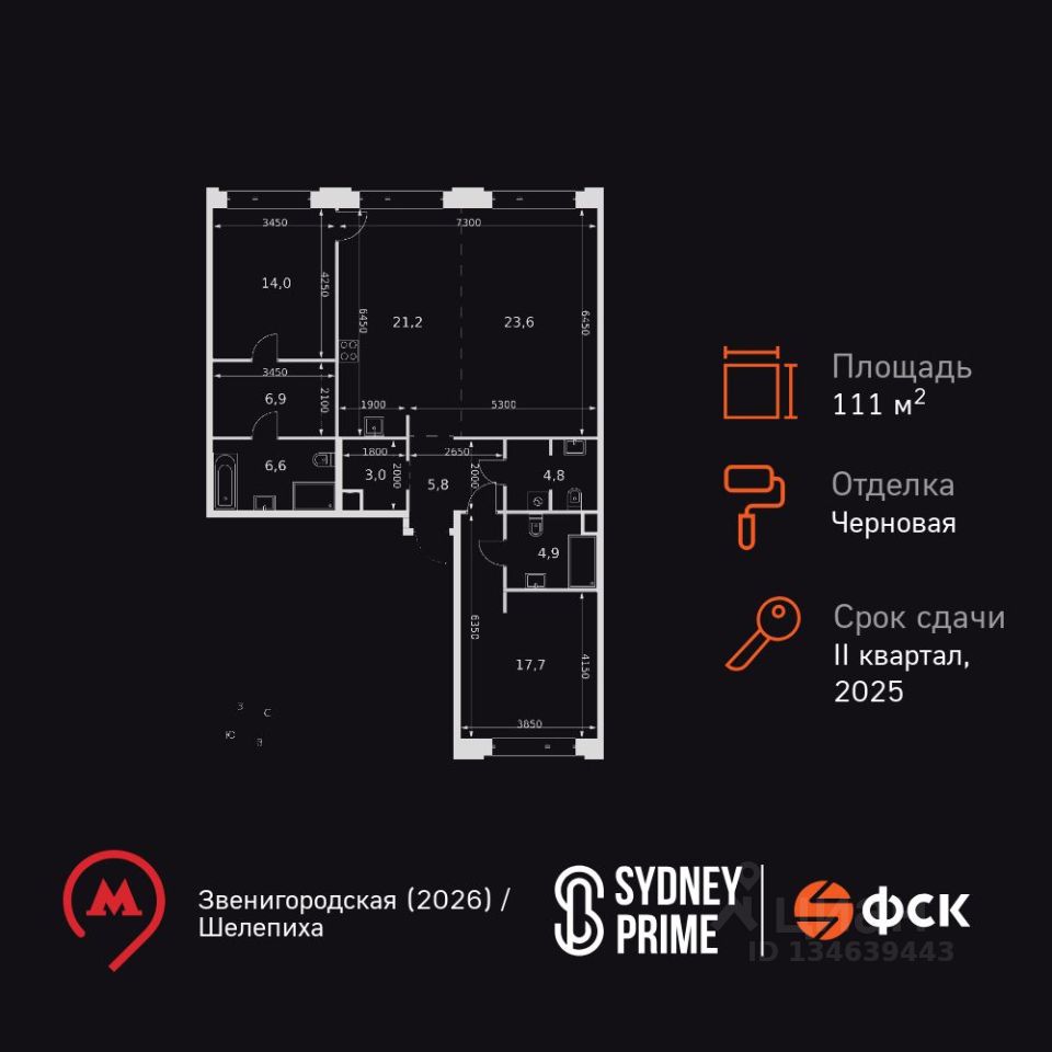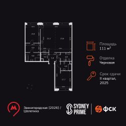 Продаётся 3-к квартира номер 74 общей площадью 111.7 кв.м. на 5-м этаже 8 этажного дома. Отделка Whitebox. Цена с учётом скидки!