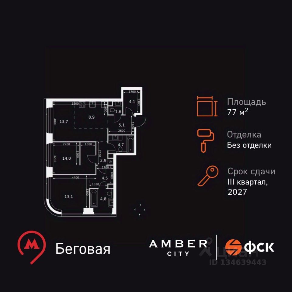 - Станция метро "Беговая" - 5 минут пешком