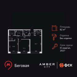 Продаётся 3-к квартира номер 530 общей площадью 82.5 кв.м. на 38-м этаже 46 этажного здания. Без отделки. Цена с учётом скидки.