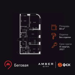 Продаётся 4-к квартира номер 540 общей площадью 88.7 кв.м. на 38-м этаже 46 этажного здания. Без отделки. Цена с учётом скидки.