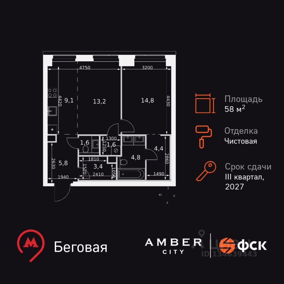 Продаётся 2-к квартира номер 207 общей площадью 58.7 кв.м. на 15-м этаже 46 этажного здания. Чистовая отделка. Цена с учётом скидки.