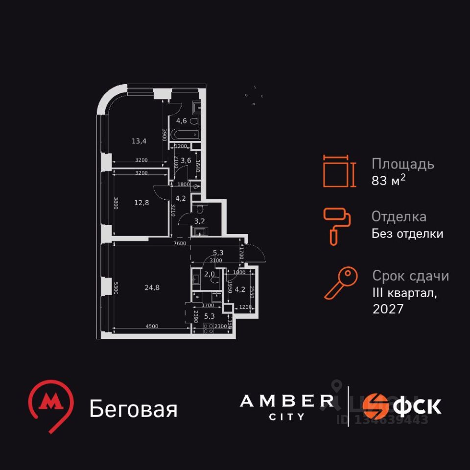 Продаётся 3-к квартира номер 279 общей площадью 83.4 кв.м. на 20-м этаже 46 этажного здания. Без отделки. Цена с учётом скидки.