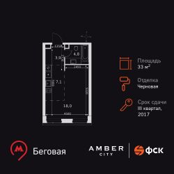 Продаётся 1-к квартира номер 186 общей площадью 33.8 кв.м. на 14-м этаже 46 этажного дома. Отделка Whitebox. Цена с учётом скидки!