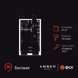 Продаётся квартира-студия номер 212 общей площадью 33.6 кв.м. на 16-м этаже 46 этажного здания. Чистовая отделка. Цена с учётом скидки.