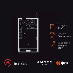 Продаётся квартира-студия номер 261 общей площадью 33.7 кв.м. на 19-м этаже 46 этажного здания. Отделка Whitebox. Цена с учётом скидки.