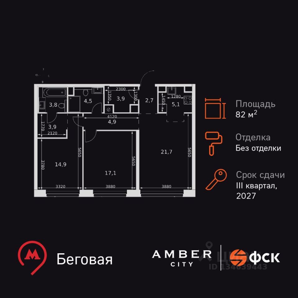 Продаётся 3-к квартира номер 494 общей площадью 82.5 кв.м. на 35-м этаже 46 этажного здания. Без отделки. Цена с учётом скидки.