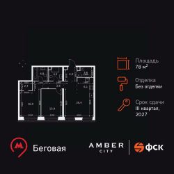 Продаётся 3-к квартира номер 508 общей площадью 78.3 кв.м. на 36-м этаже 46 этажного здания. Без отделки. Цена с учётом скидки.
