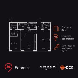 Продаётся 3-к квартира номер 518 общей площадью 82.5 кв.м. на 37-м этаже 46 этажного здания. Без отделки. Цена с учётом скидки.