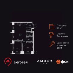Продаётся 3-к квартира номер 642 общей площадью 68.7 кв.м. на 2-м этаже 57 этажного здания. Без отделки. Цена с учётом скидки.